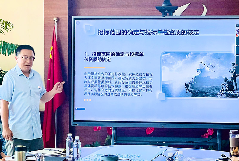 為進一步強化天津咨詢各業務板塊協同聯動,通過分享招標業務板塊在政府采購和招投標項目中積累的智力資源和實戰經驗,提升各業務板塊在參與項目投標中應對實際問題的能力,促進工程咨詢服務質量效率提升,2023年7月18日下午,由天津咨詢人力資源部、戰略市場部聯合主辦、泛亞公司和第二事業部(招標公司)協辦的系統專業共享課(第二期)——《招投標業務交流培訓》在本部四樓會議室開講。邀請泛亞公司副總經理劉杰和第二事業部(招標公司)招標業務二部部長高睿主講,授課采取“線上+線下”形式進行,共計70余名員工參加了課程學習。