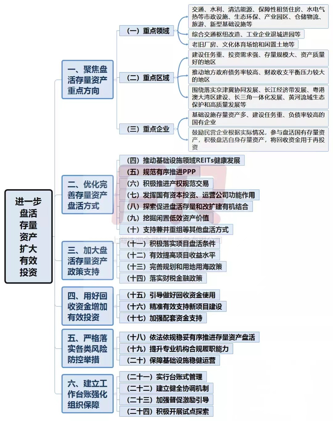 剛剛,國(guó)務(wù)院辦公廳發(fā)布《關(guān)于進(jìn)一步盤活存量資產(chǎn)擴(kuò)大有效投資的意見》(國(guó)辦發(fā)〔2022〕19號(hào))。新規(guī)共提出24條意見,整體框架如下: