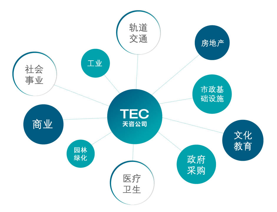 天咨公司業務主要涵蓋投資咨詢、招標代理、造價咨詢、工程監理、項目管理、施工圖設計審查、綠色建筑咨詢、PPP咨詢、全過程工程咨詢、司法鑒定等版塊。從業范圍涵蓋了市政基礎設施、社會事業、公共管理、房屋建筑、交通、能源、工業、金融、生態環境、軍工等多個領域,傳統優勢行業領域為基礎設施、房地產、社會事業的建筑領域。